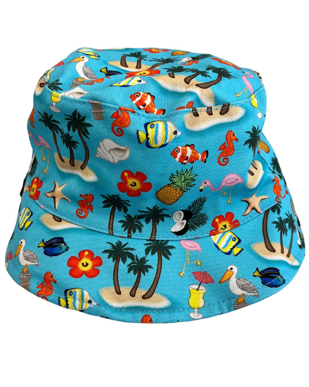 Chapeau Reversible : Palmiers, poissons et plage tropical