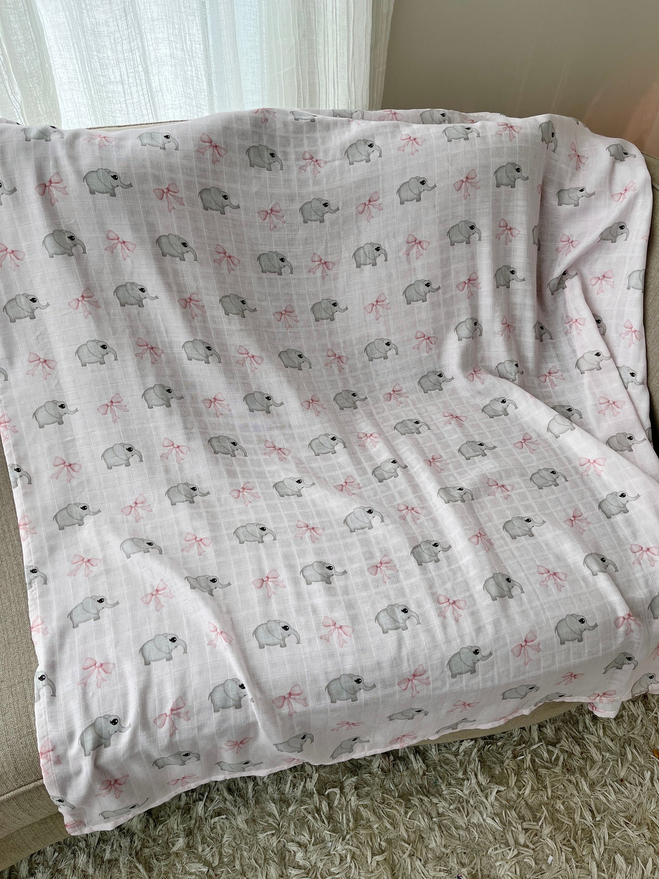 Couverture de mousseline en bamboo et coton dessinée et designée au Québec, Canada par l’illustratrice Danielle Pomerleau.